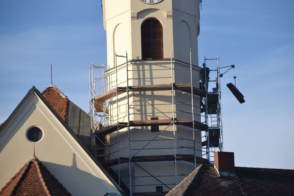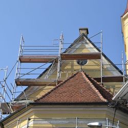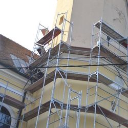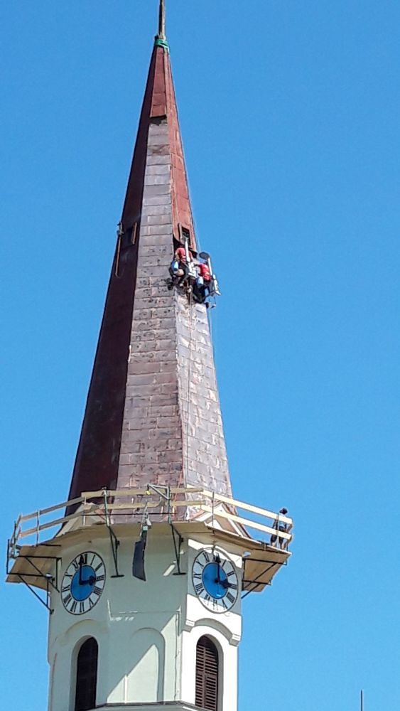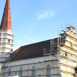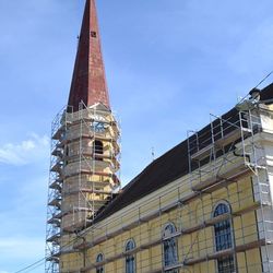 - Gerüstaufbau für die Erneuerung des Turmbleches