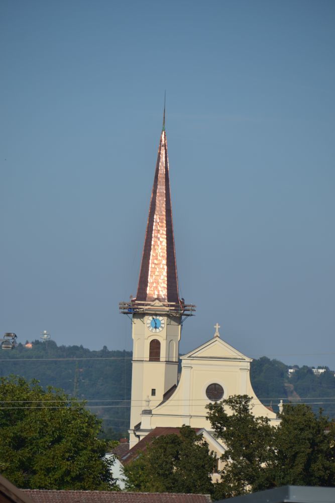 In der zweiten Hälte des September 2016 begannen die Renovierungsarbeiten der Außenfassade und der Kirchturmspitze unserer Pfarrkirche.