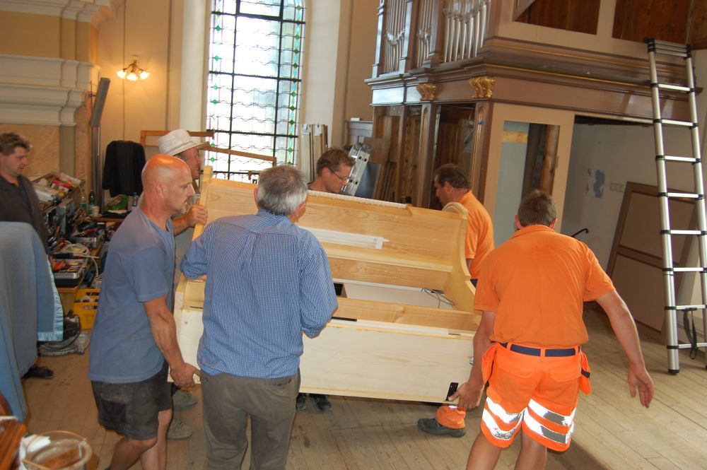 In den vergangenen zwei Monaten wurde die Orgel in alle Einzelteile zerlegt, gereinigt und die hölzernen Teile gegen Holzwurm und Schimmelpilz behandelt. Jede der über 1300 Pfeifen wurde gereinigt, wenn notwendig repariert, gefühlvoll nachintoniert und gestimmt. Die Prospektpfeifen wurden darüber hinaus neu lackiert. Alle Ventile, Kegel und Klappen wurden repariert und neu befilzt, alle Membranen wurde ausgetauscht. Die Windanlage wurde gewartet, undichte Stellen abgedichtet und der Winddruck neu eingestellt. Die veraltete Elektrik wurde komplett entfernt und durch zeitgemäße elektrische und elektronische Komponenten ersetzt.