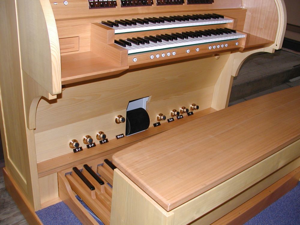 Der neue elektronische Spieltisch mit verschleißarmen optischen Signalgebern, Bussystem und Sequenzer mit 4000 speicherbaren Registerkombinationen zählt zu den modernsten Österreichs.