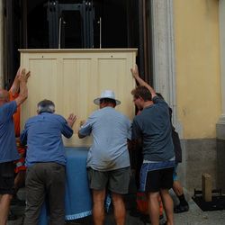 - Bevor der neue Spieltisch aufgestellt werden konnte, musste der alte Spieltisch abtransportiert werden.